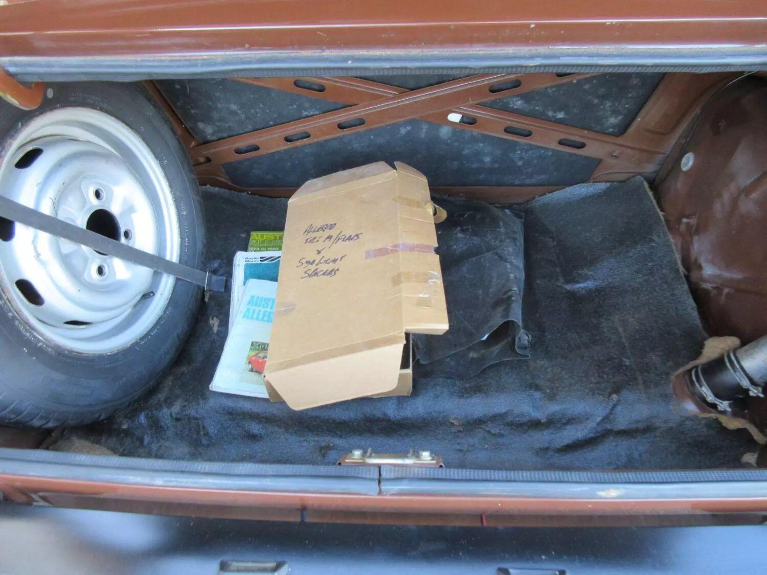 The allegro is still displaying original number plates, dealer stickers and tool kit. The radio works and looks in keeping. Two speed fan blower with perfect heater. The engine cooling fan is working correctly. Even the heated rear window clears. Bodywork very solid with some micro blistering to bonnet and wing. The under side has not been welded and remains in remarkable rot free condition. Interior very clean and in good order except the usual sun damage to rear seat top and drivers seat material has a small split.